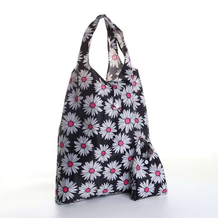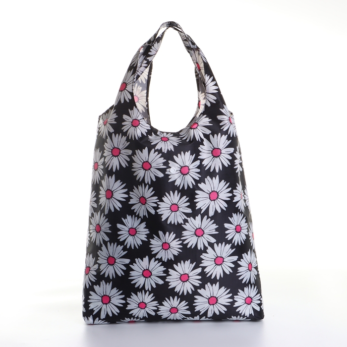 Сумка хозяйственная на кнопке, складная, цвет чёрный/белый