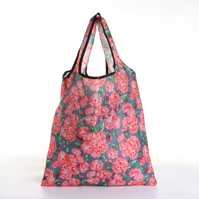 Сумка хозяйственная без застёжки, складная, цвет серый/розовый