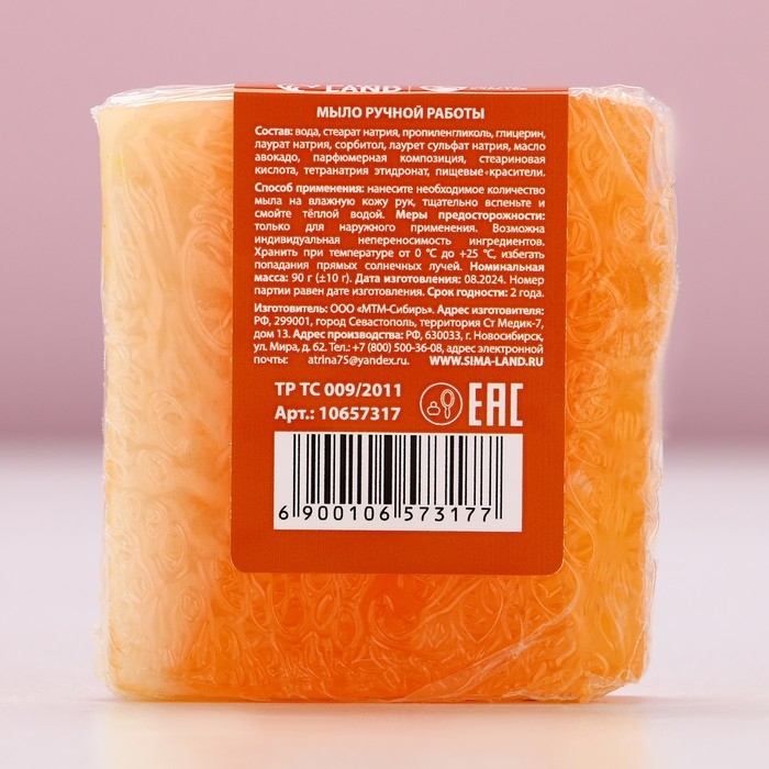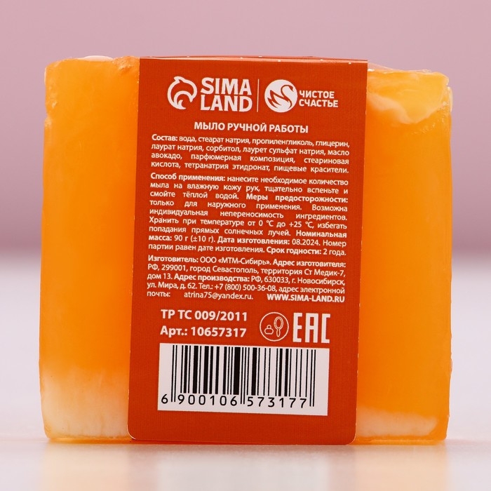 Мыло для рук ручной работы, 90 г, аромат корицы и апельсина, Новый Год
