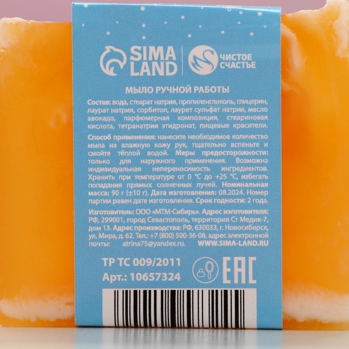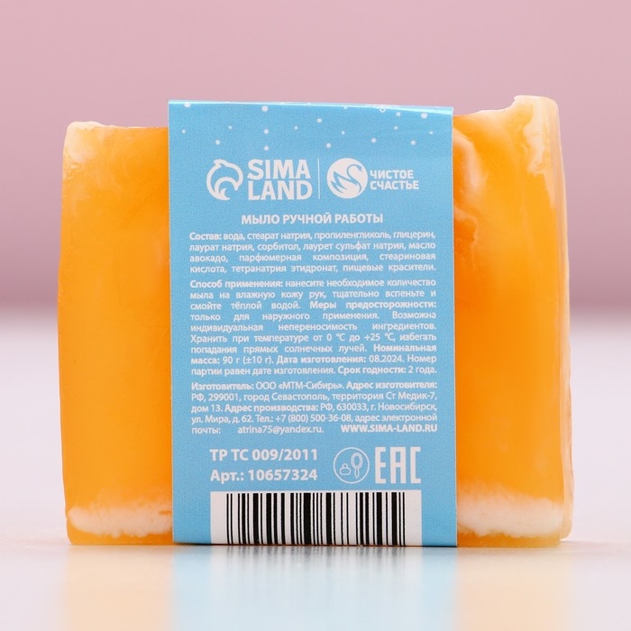 Новый Год. Мыло для рук ручной работы, 90 г, аромат снежной облепихи