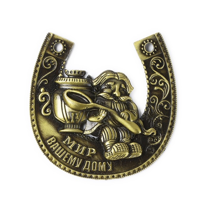 Подкова домовой с самоваром "Мир вашему дому", 7 х 7 см