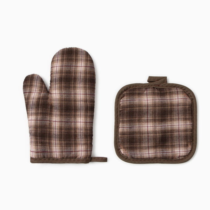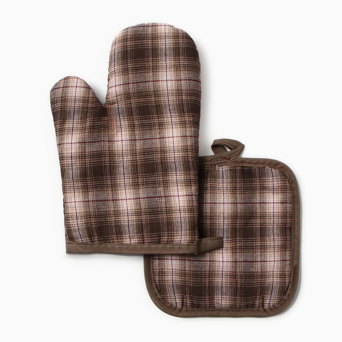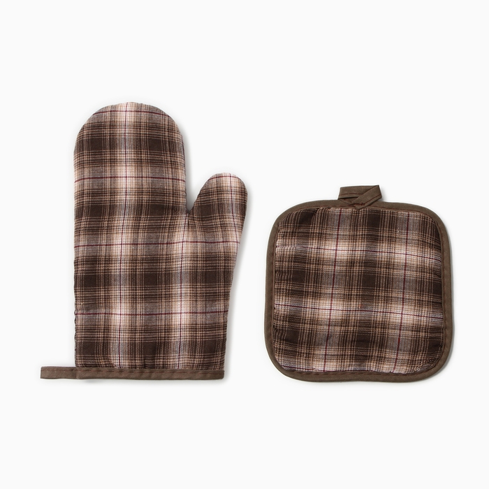 Кухонный набор (2 предмета) Этель Клетка прихватка 17*17см, варежка-прихватка 26*16см,100%п/э