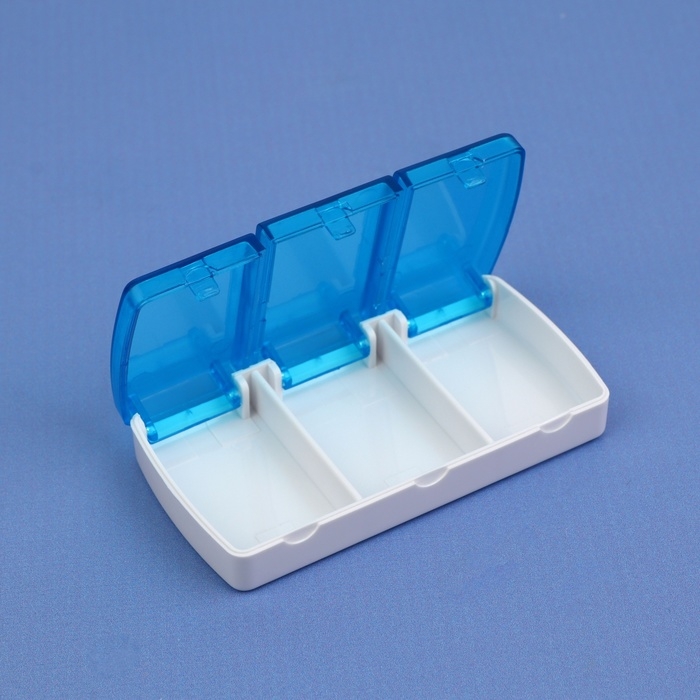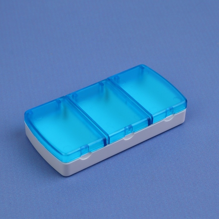 Таблетница, 9,5 × 4,8 × 1,8 см, 3 секции, цвет голубой
