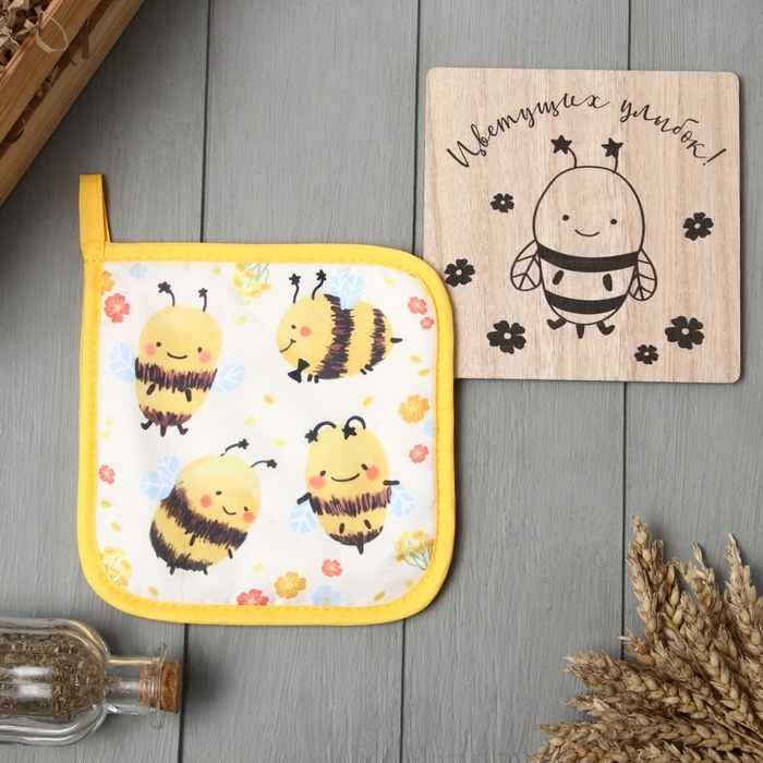 Набор кухонный Доляна Ярких моментов: подставка 15*15 см, прихватка 17*17см