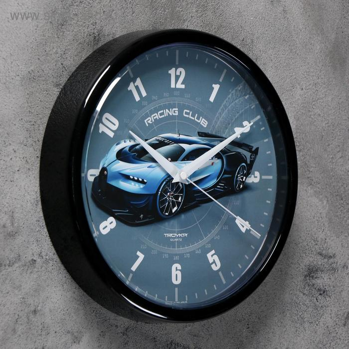 Часы настенные, серия: Интерьер, "Гоночный автомобиль", d-22.5 см, синий