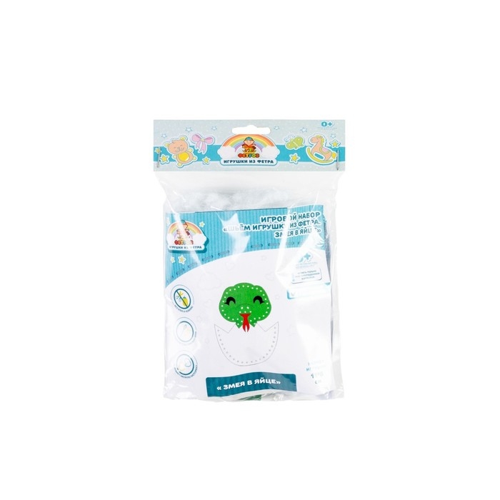 Игровой набор «Шьём игрушку из фетра. Змейка в яйце» можно использовать как дома, так и купить несколько наборов в детский сад для занятий. С готовой игрушкой ребёнок может придумать и разыграть какую-нибудь историю, развивая свою фантазию.