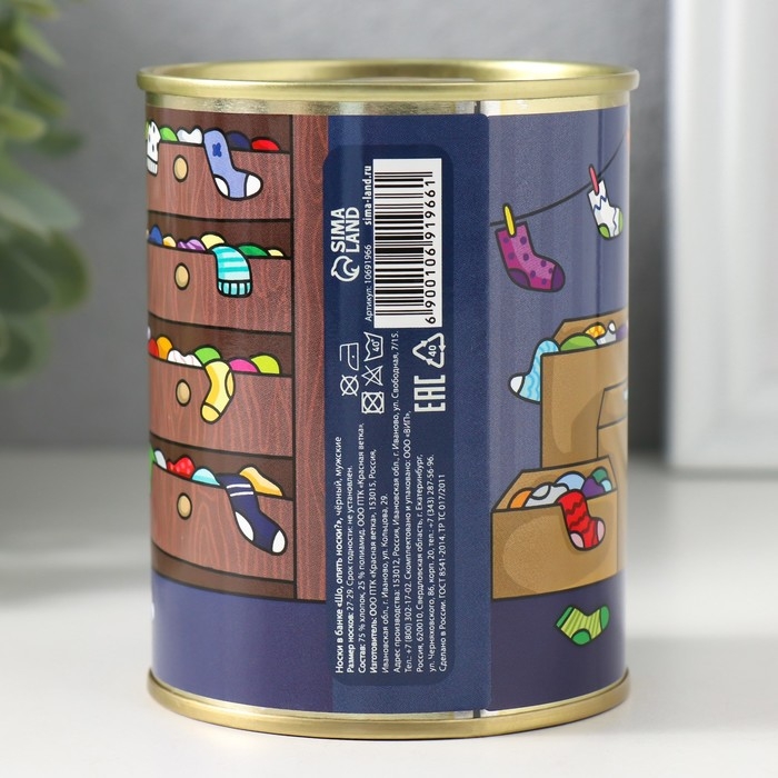 Носки в банке "Шо, опять носки?" (внутри носки мужские, цвет чёрный)