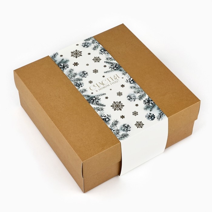 Коробка подарочная новогодняя складная «Счастья в Новом году», тиснение, 20 х 20 х 8 см, Новый год