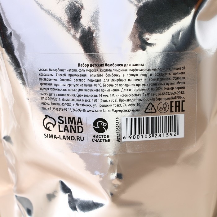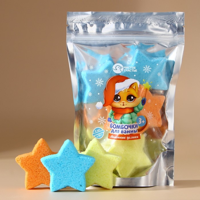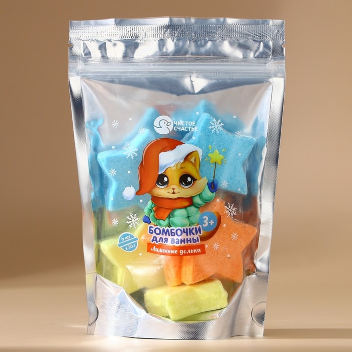 Подарочный набор косметики детский, бомбочки для ванны, 6 х 30 г, аромат лимонных долек, Новый Год