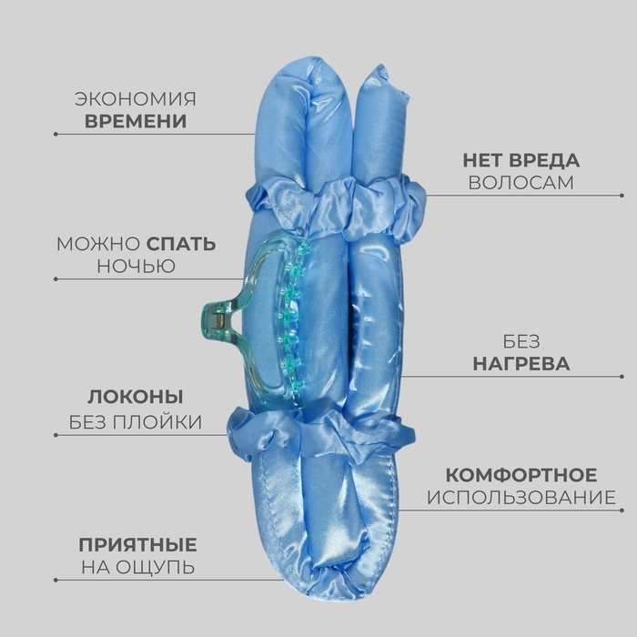 Набор для завивки «Волшебный локон», 4 предмета: бигуди, резинки - 2 шт, крабик, цвет голубой