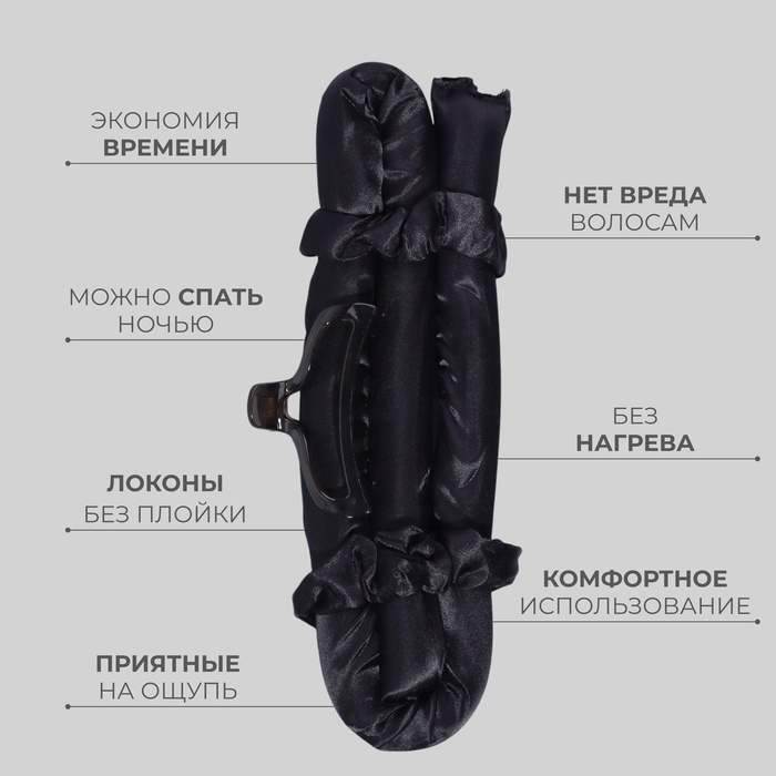 Набор для завивки «Волшебный локон», 4 предмета: бигуди, резинки - 2 шт, крабик, цвет чёрный