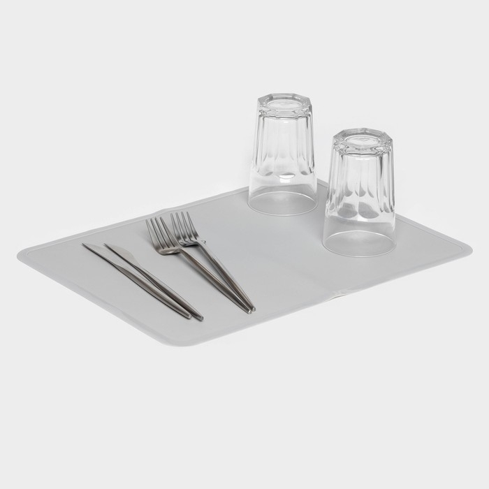 Коврик для сушки посуды Доляна «Шилдон», 39,5×30×0,1 см, цвет серый