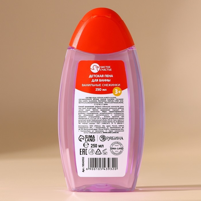 Пена для ванны детскся, 250 мл, аромат ванильной снежинки, Новый Год