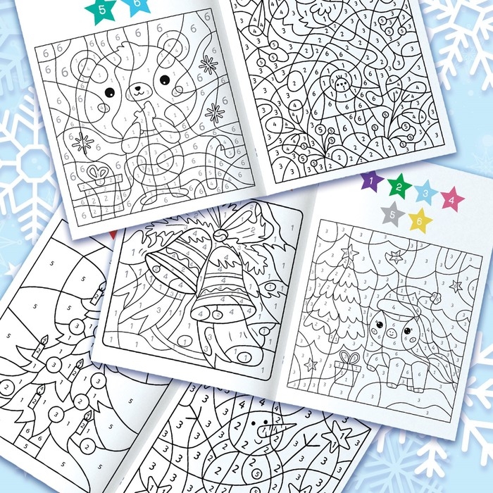Раскраска-загадка по номерам, 28 стр., новогодняя