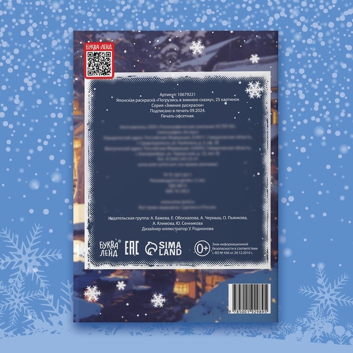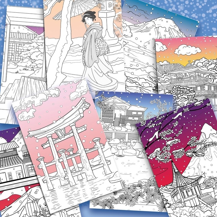Японская раскраска «Погрузись в зимнюю сказку», 25 картинок