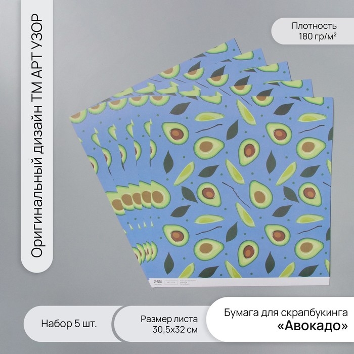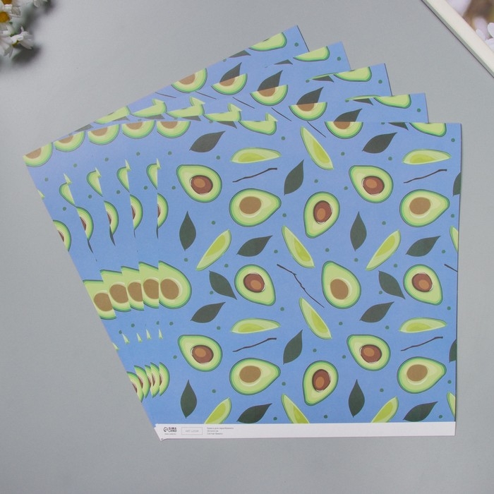 Бумага для скрапбукинга "Авокадо" плотность 180 гр набор 5 шт 30,5х32 см