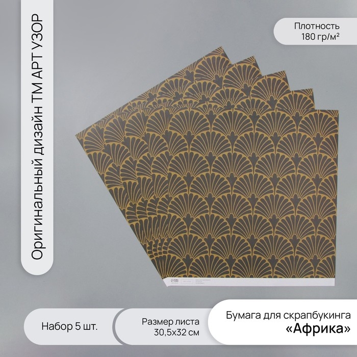 Бумага для скрапбукинга "Веера" плотность 180 гр набор 5 шт 30,5х32 см