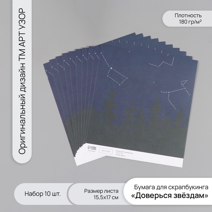 Бумага для скрапбукинга "Доверься звёздам" плотность 180 гр набор 10 шт 15,5х17 см