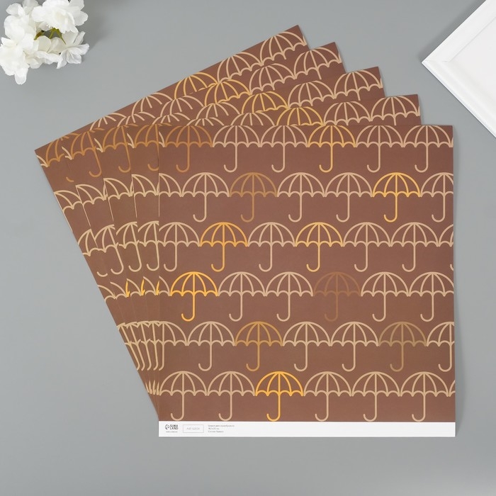 Бумага для скрапбукинга "Зонтики" плотность 180 гр набор 5 шт 30,5х32 см