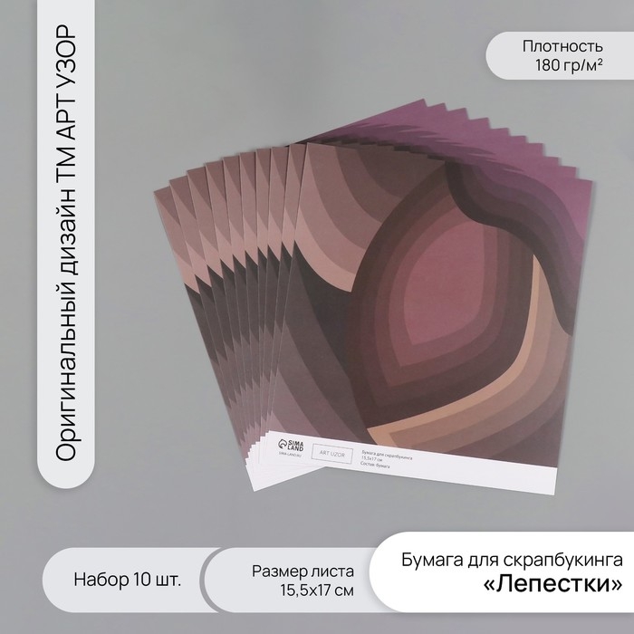 Бумага для скрапбукинга "Лепестки" плотность 180 гр набор 10 шт 15,5х17 см