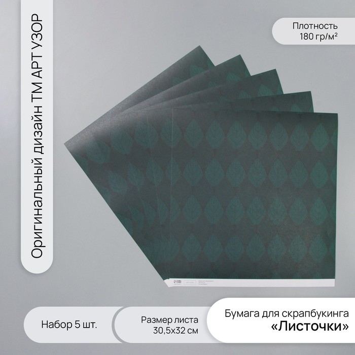 Бумага для скрапбукинга "Листочки" плотность 180 гр набор 5 шт 30,5х32 см