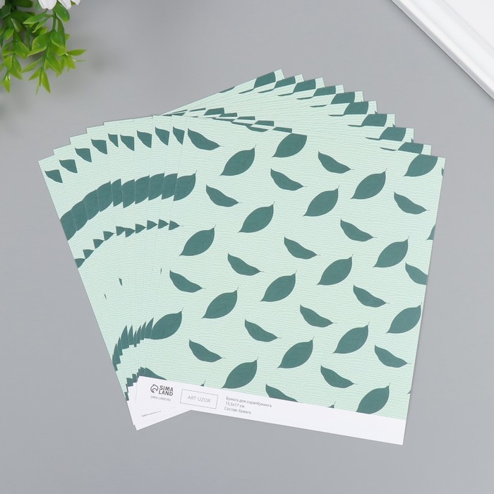Бумага для скрапбукинга "Листья авокадо" плотность 180 гр набор 10 шт 15,5х17 см