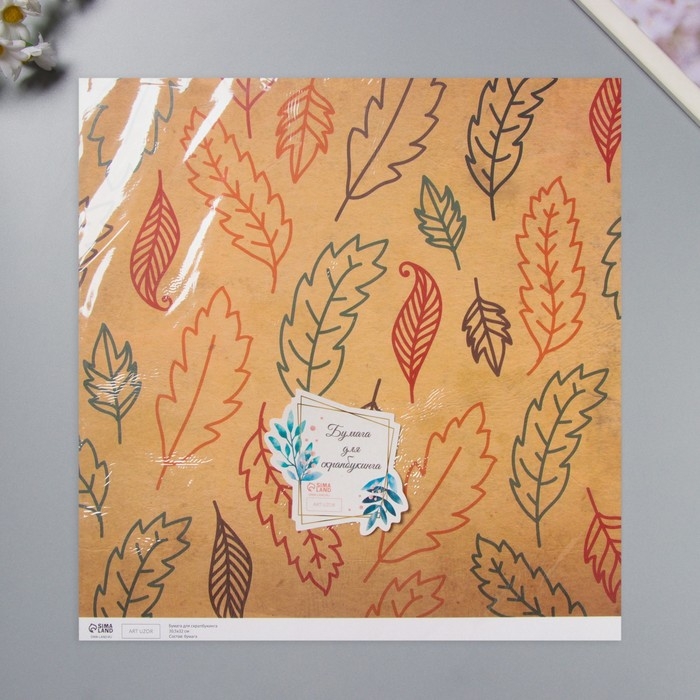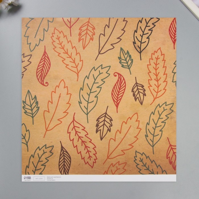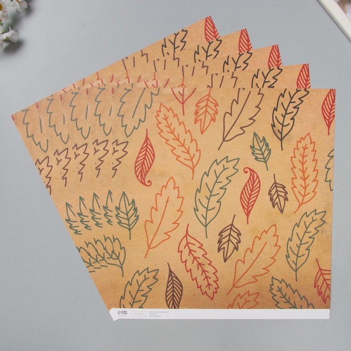 Бумага для скрапбукинга "Листья" плотность 180 гр набор 5 шт 30,5х32 см