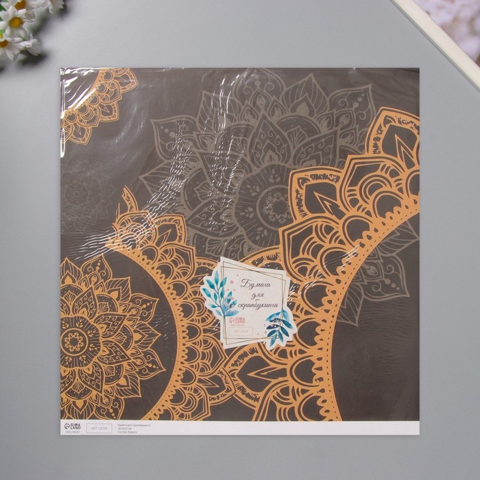 Бумага для скрапбукинга "Мандала на чёрном" плотность 180 гр набор 5 шт 30,5х32 см