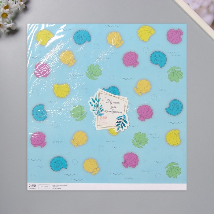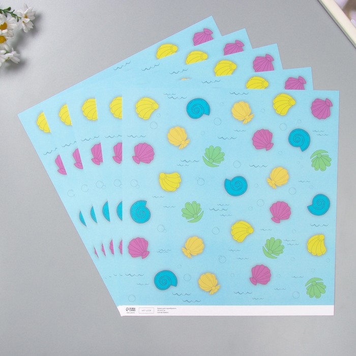 Бумага для скрапбукинга "Морские ракушки" плотность 180 гр набор 5 шт 30,5х32 см