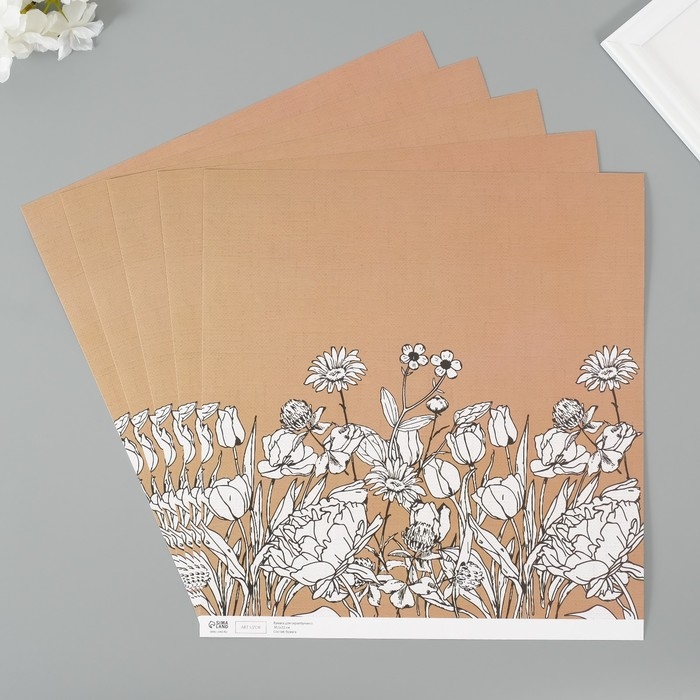 Бумага для скрапбукинга "Полевые цветы" плотность 180 гр набор 5 шт 30,5х32 см