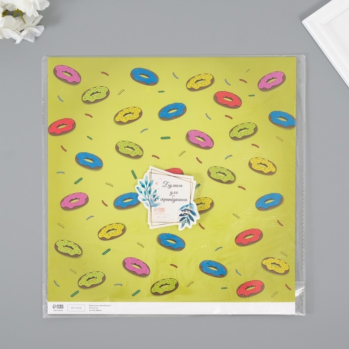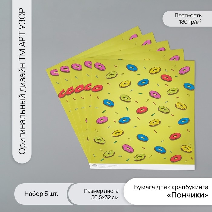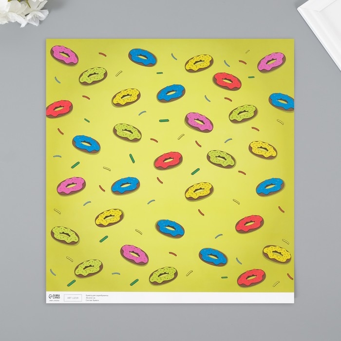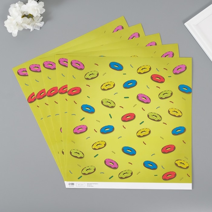 Бумага для скрапбукинга "Пончики" плотность 180 гр набор 5 шт 30,5х32 см