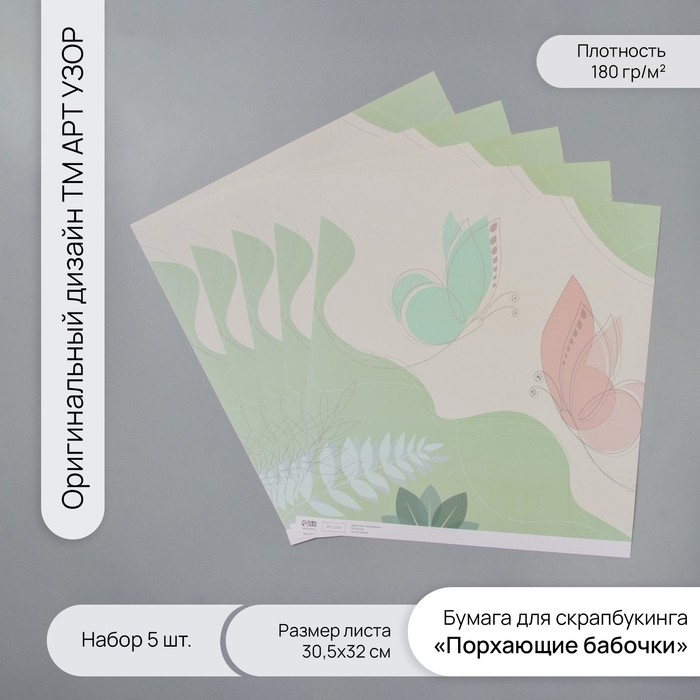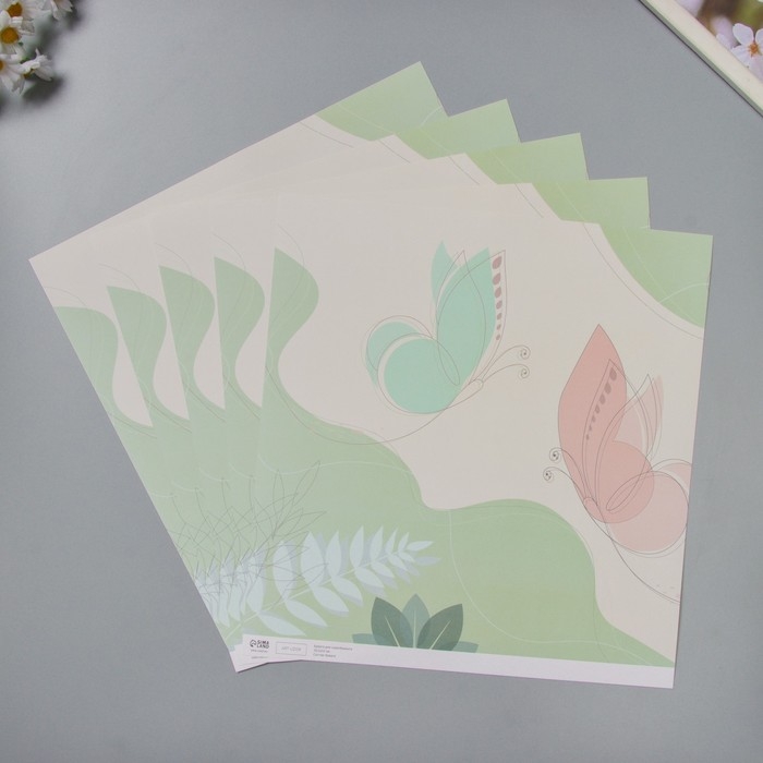 Бумага для скрапбукинга "Порхающие бабочки" плотность 180 гр набор 5 шт 30,5х32 см