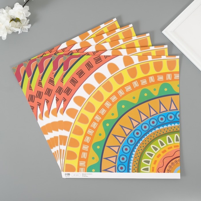 Бумага для скрапбукинга "Этнические узоры" плотность 180 гр набор 5 шт 30,5х32 см