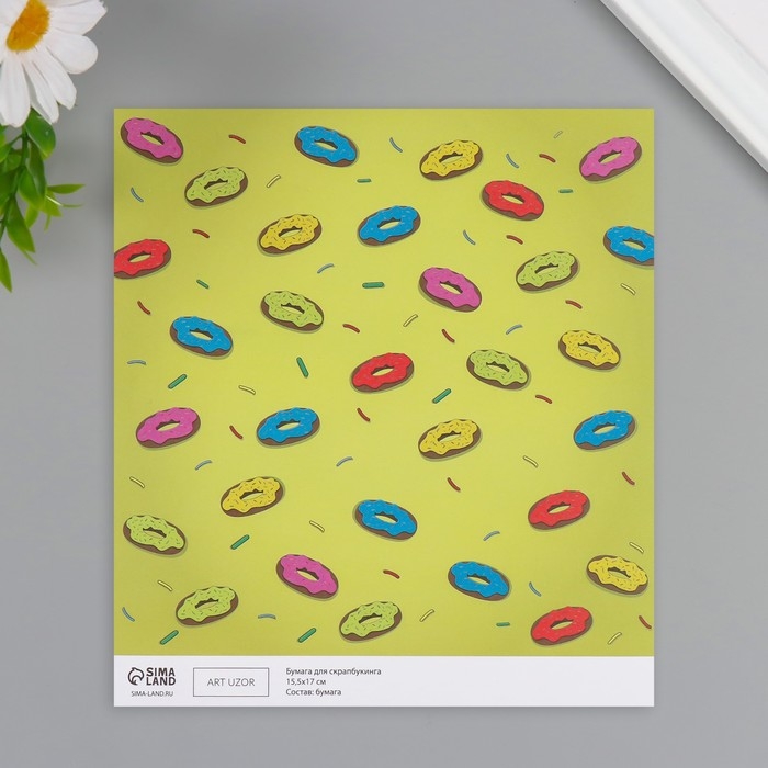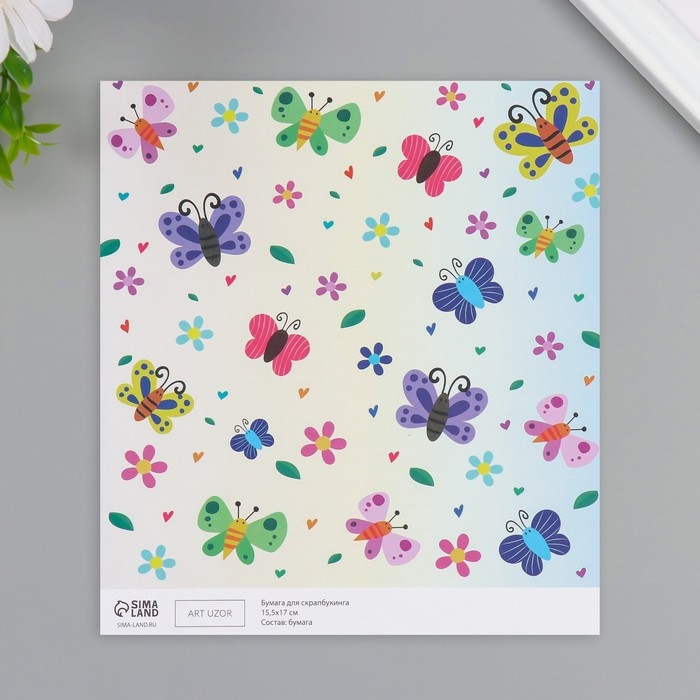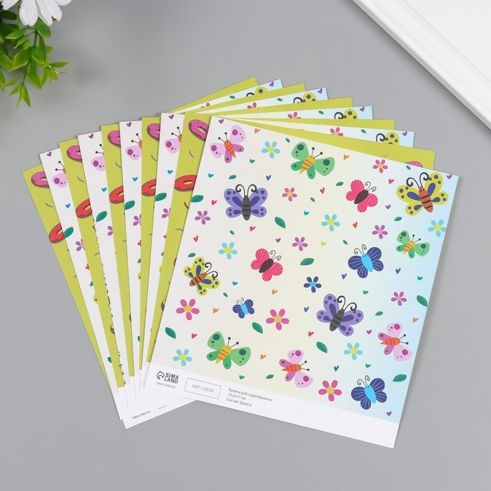 Бумага для скрапбукинга двусторонняя "Бабочки и пончики" плотность 180 гр набор 10 шт 15,5х17 см 1