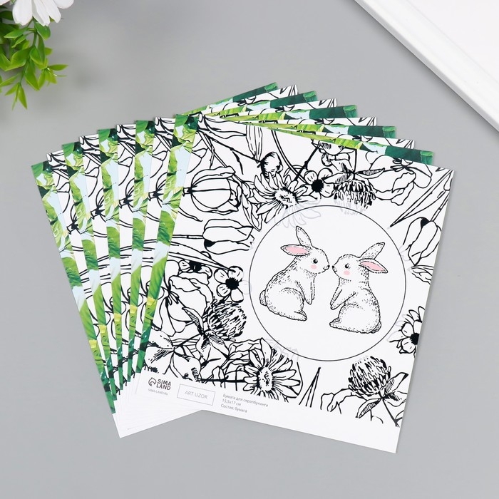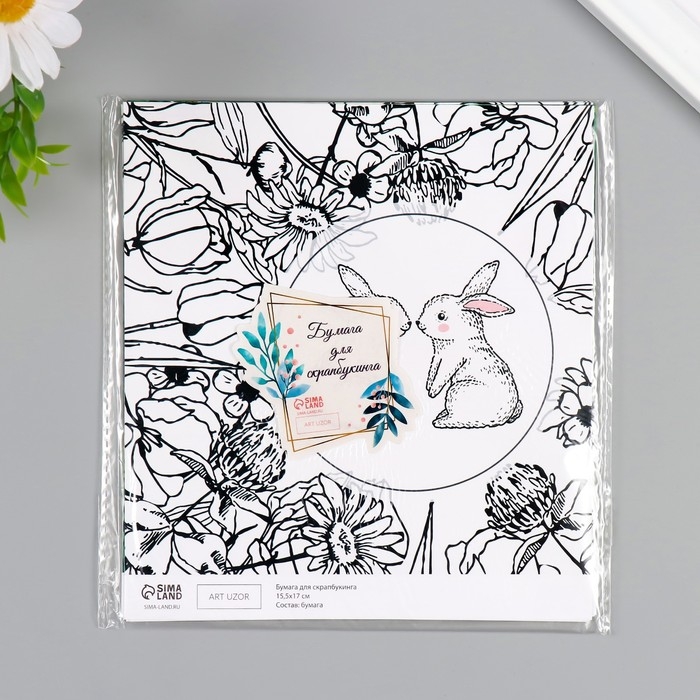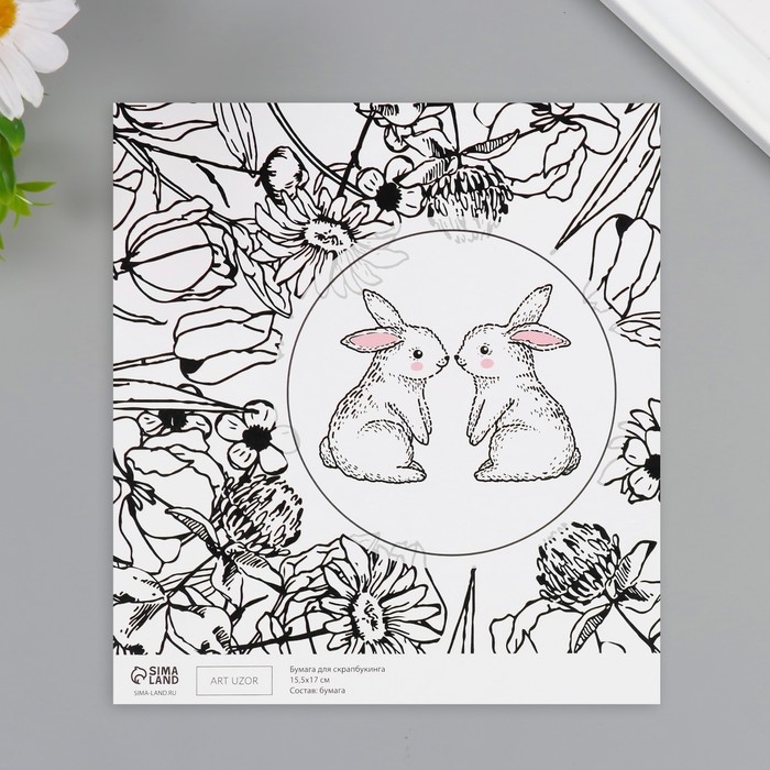 Бумага для скрапбукинга двусторонняя "Зайчики и цыплёнок" плотность 180 гр набор 10 шт 15,5х17 см