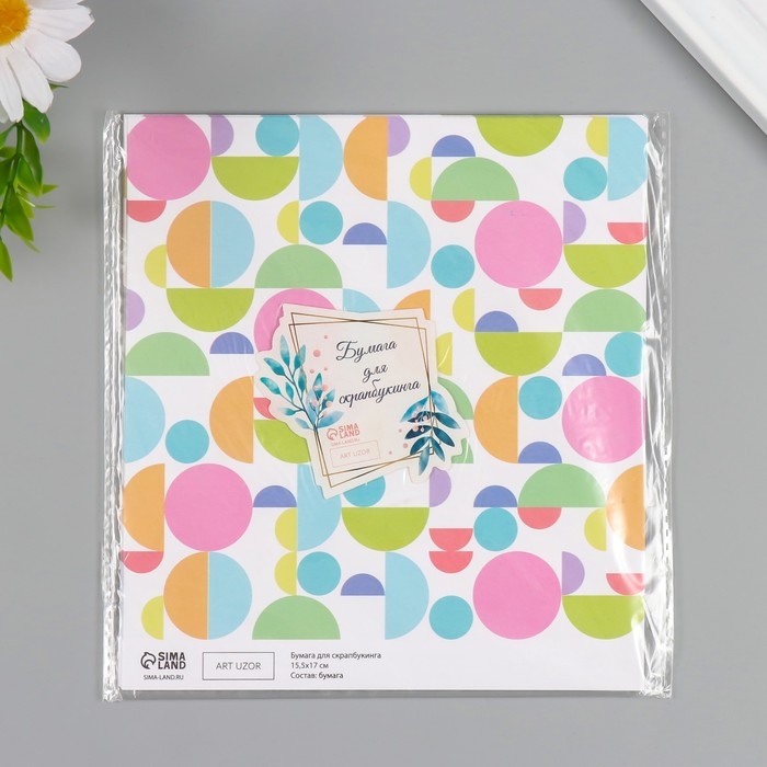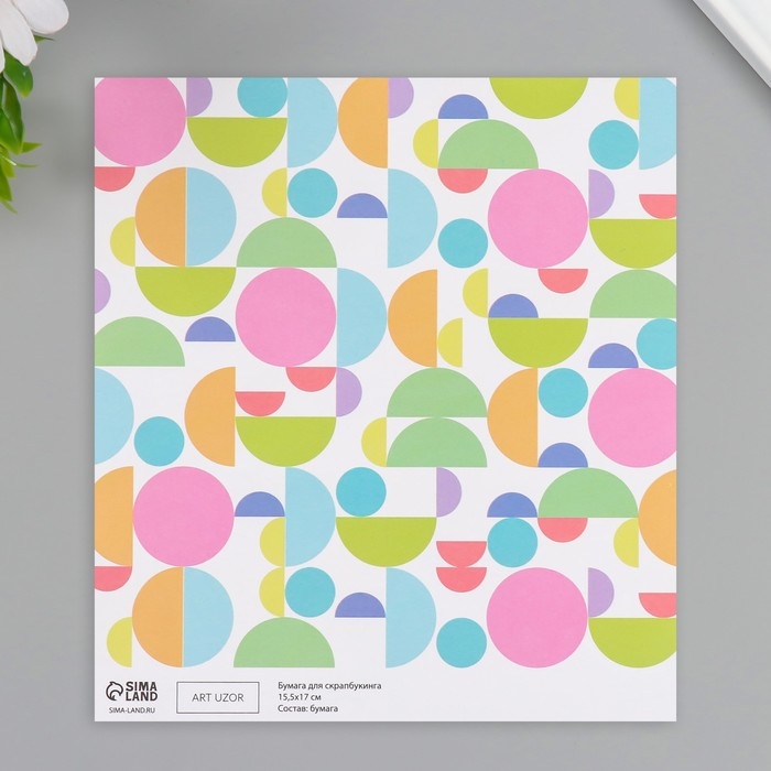 Бумага для скрапбукинга двусторонняя "Змейка и яркие круги" плотность 180 гр набор 10 шт 15,5х17 см