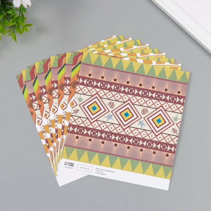 Бумага для скрапбукинга двусторонняя "Этника" плотность 180 гр набор 10 шт 15,5х17 см