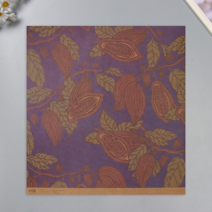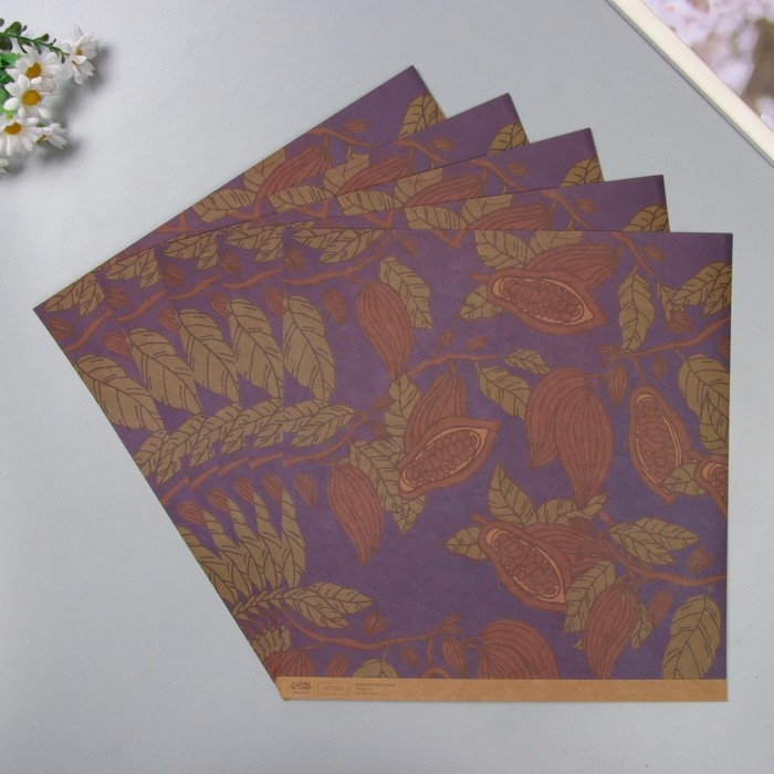 Бумага для скрапбукинга крафт "Какао на синем" плотность 180 гр набор 5 шт 30,5х32 см