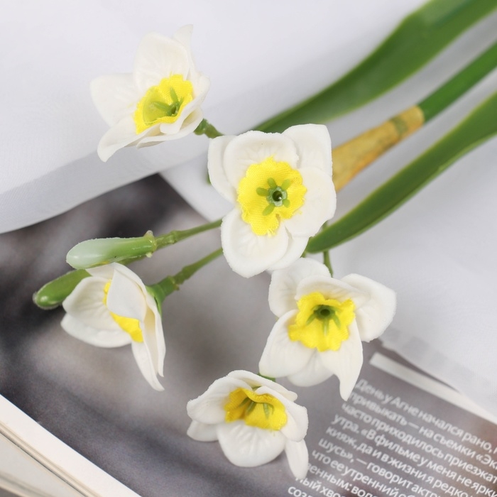 Цветы искусственные "Нарцисс люкс" диам.цветка-3,5см, 38 см, бело-жёлтый