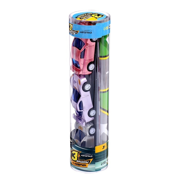 - В комплект входят 3 разноцветные машинки, идеально подходящие для игр на коврике и развития мелкой моторики у ребёнка.