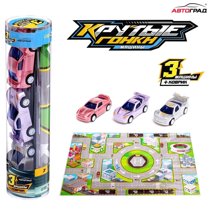 Игровой набор «Крутые гонки», 3 инерционные машинки и коврик-дорога