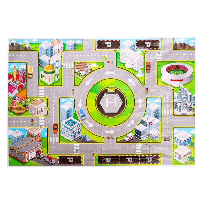 - Коврик украшен изображениями зданий города, что создаёт реалистичную игровую среду.