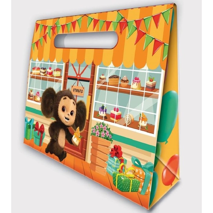 Пакет-коробка, подарочная упаковка, 40х30х12 см, Чебурашка