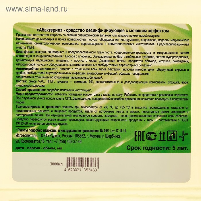 - При контакте с остаточными количествами мыла и анионных поверхностно-активных веществ дезинфицирующие свойства растворов препарата «АБАКТЕРИЛ» сохраняются.