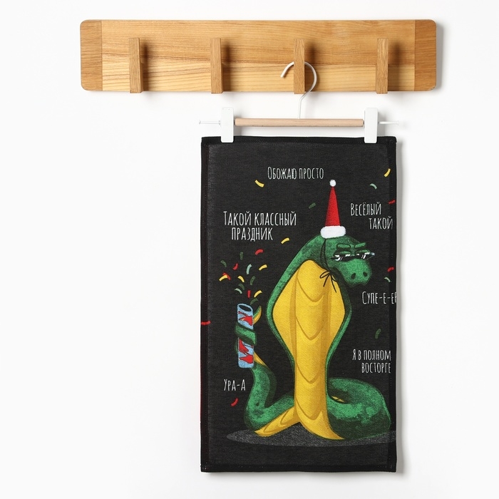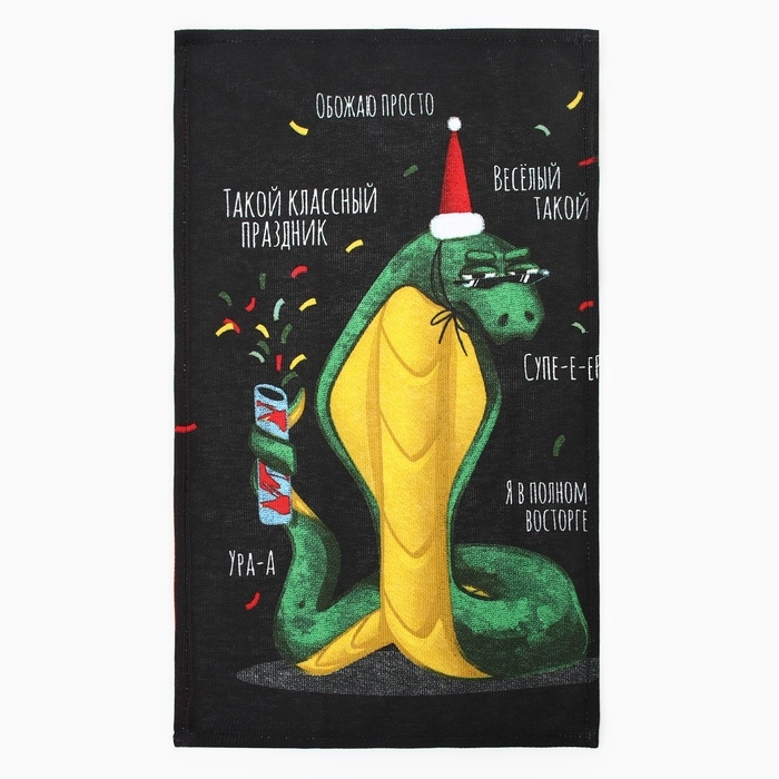 Новый год. Символ года. Змея. Полотенце Доляна "Яркий праздник" 28х46 см, 100% хл, рогожка 164 г/м2