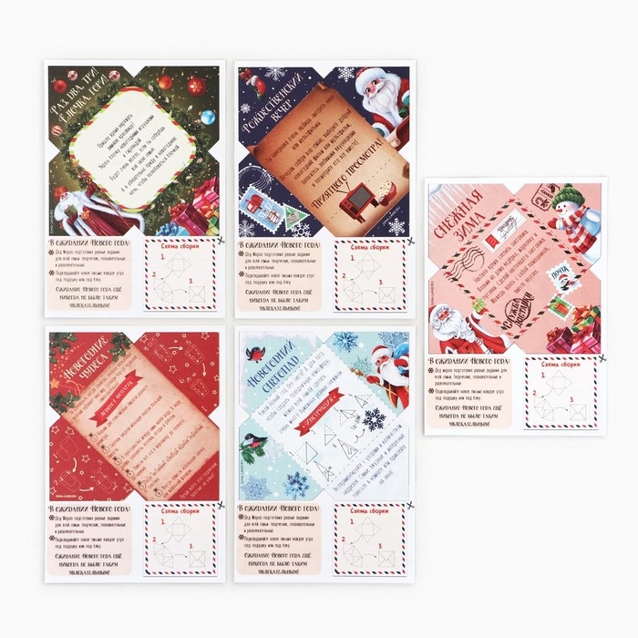 Этот набор включает в себя 5 писем от Деда Мороза, каждое из которых содержит загадку или задание, связанное с поиском подарка.