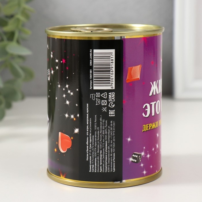 Носки в банке "Жизнь - это игра. Держи ноги в тепле" (махровые мужские)