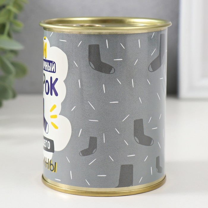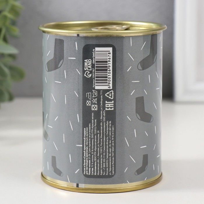 Носки в банке "Самый практичный подарок для настоящего мужчины" (внутри носки мужские, цвет