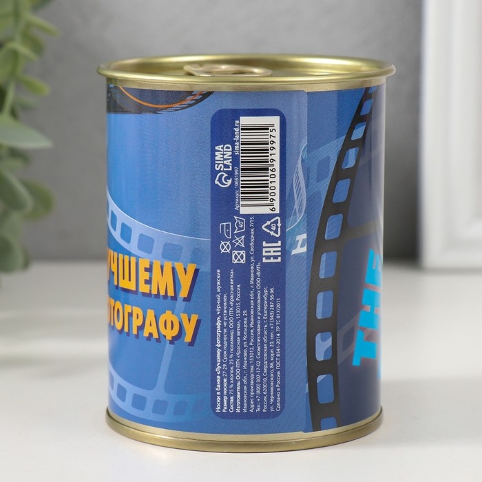 Носки в банке "Лучшему фотографу" (внутри носки мужские, цвет чёрный)
