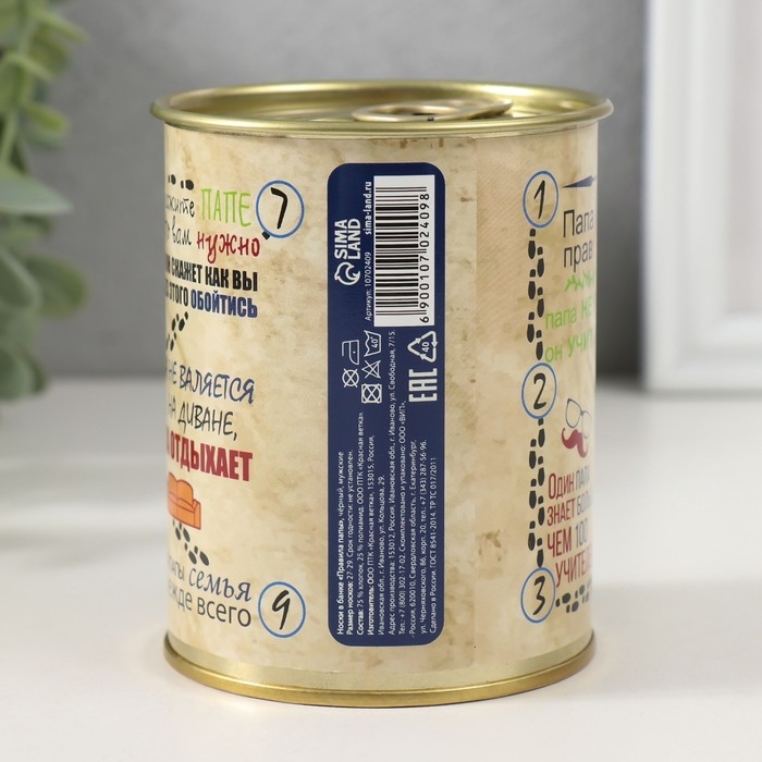 Носки в банке "Правила папы" (внутри носки мужские, цвет чёрный)